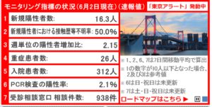 7つの指標を示し、1つでも基準値を超えると東京アラートを発動するとされています。